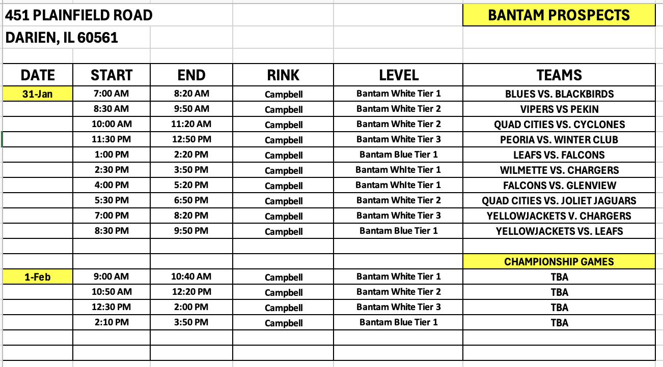 | BANTAM PROSPECTS | 14 MIN | 2 MIN | 5 MIN 3 ON 3 | 1 HR 20 MIN | 2 |