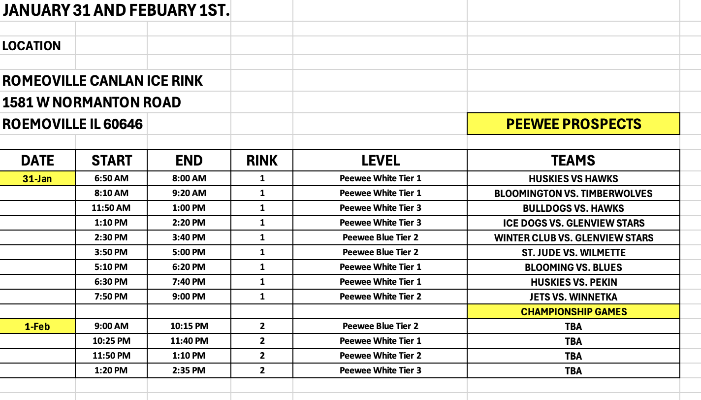 | PEEWEE PROSPECTS | 13 MIN | 2 MIN | 5 MIN 3 ON 3 | 1 HR 10 MIN | 2 |