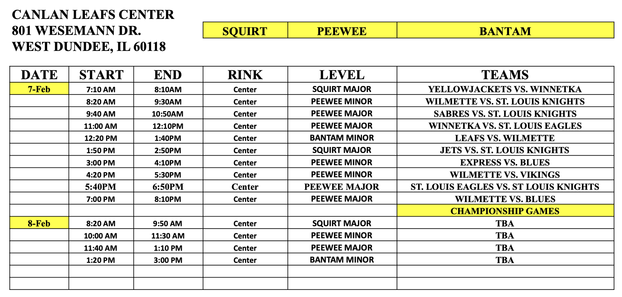 | PEEWEE MINOR/MAJOR | 14 MIN | 2 MIN | 5 MIN 3 ON 3 | 1 HR 20 MIN | 2 |