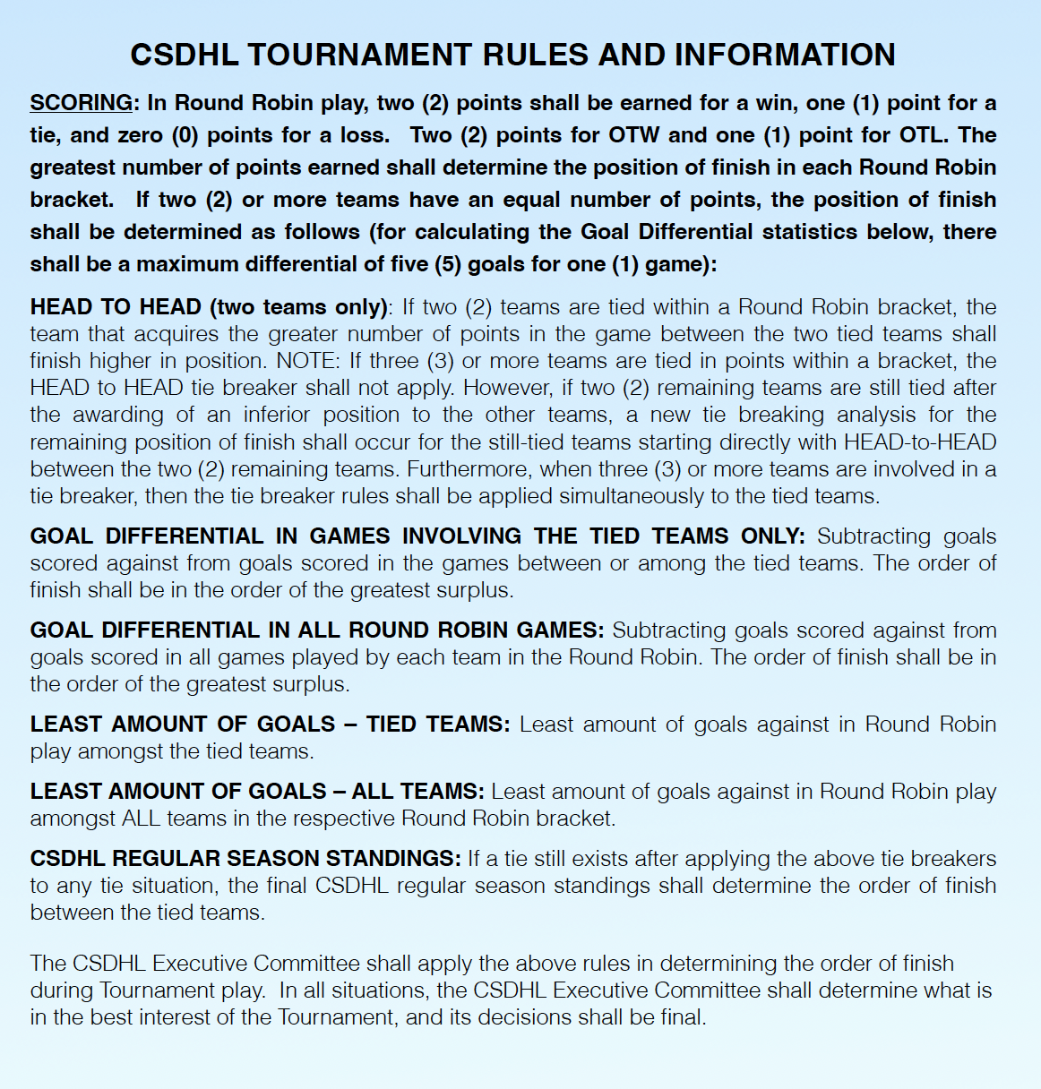 | OVERTIME 3x3 5 MIN SUDDEN DEATH GOALIES SWITCH SIDES | |||||
