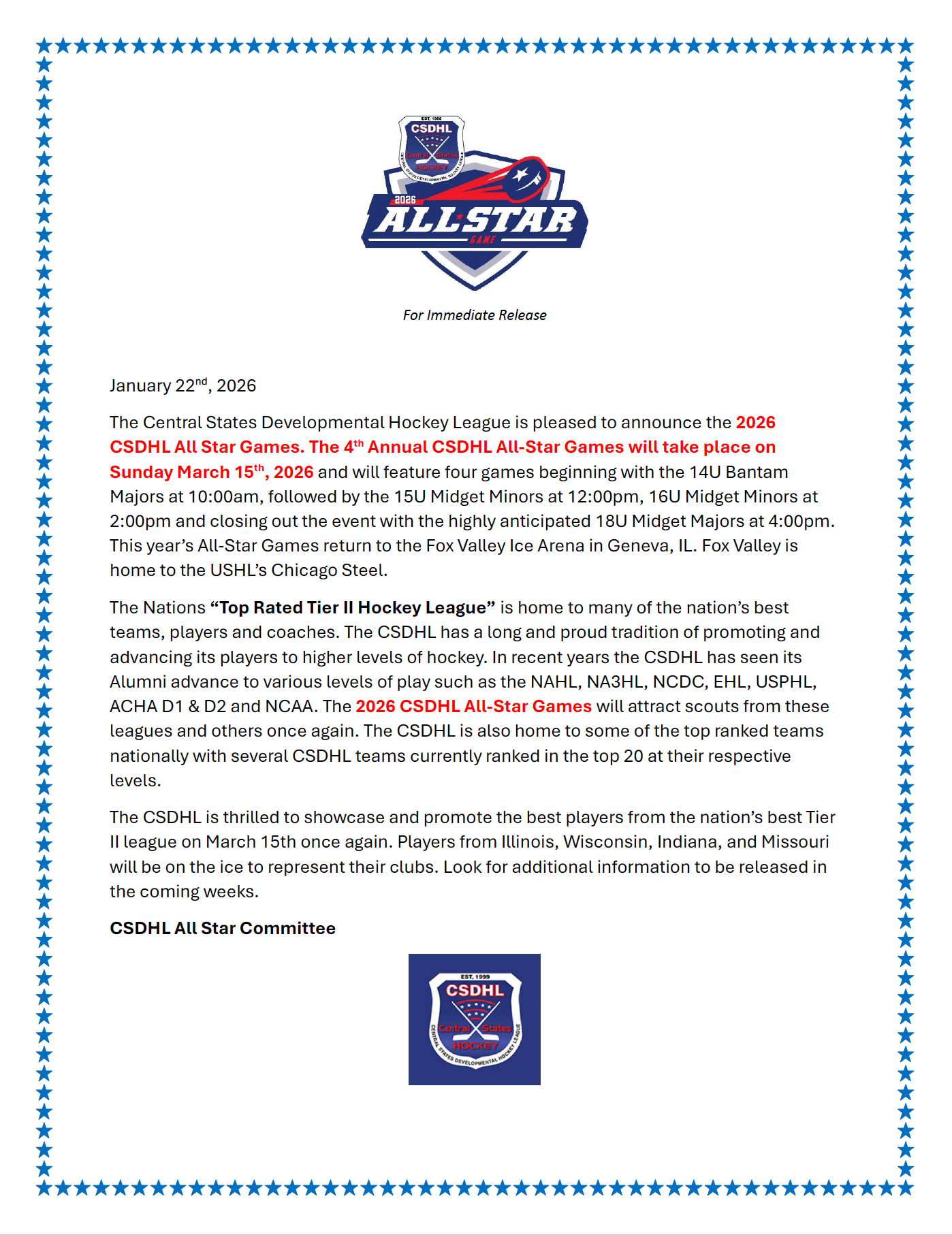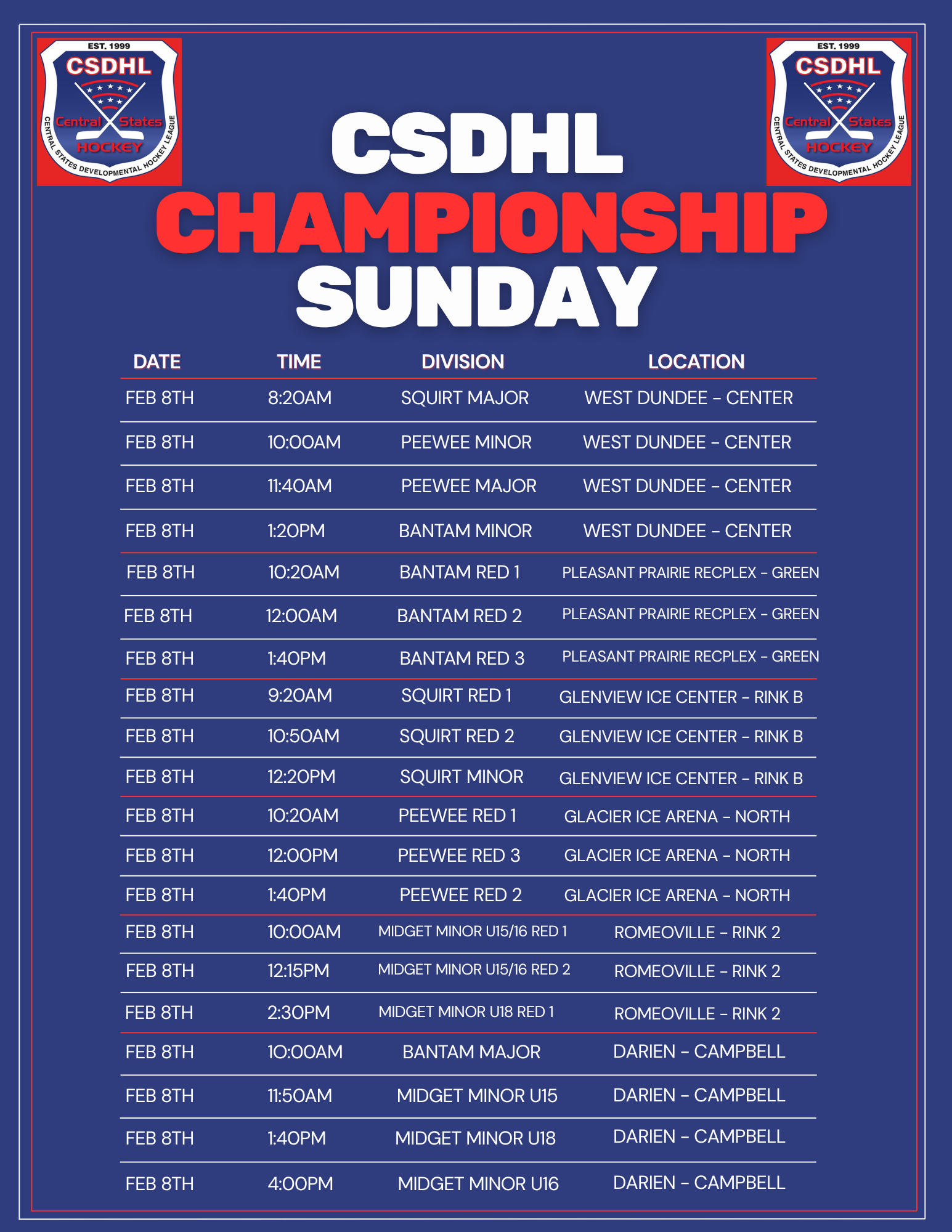 No roster changes can be made after this date without approval from the CSDHL if allowed by your home affiliate. A player will be considered ineligible without league approval.