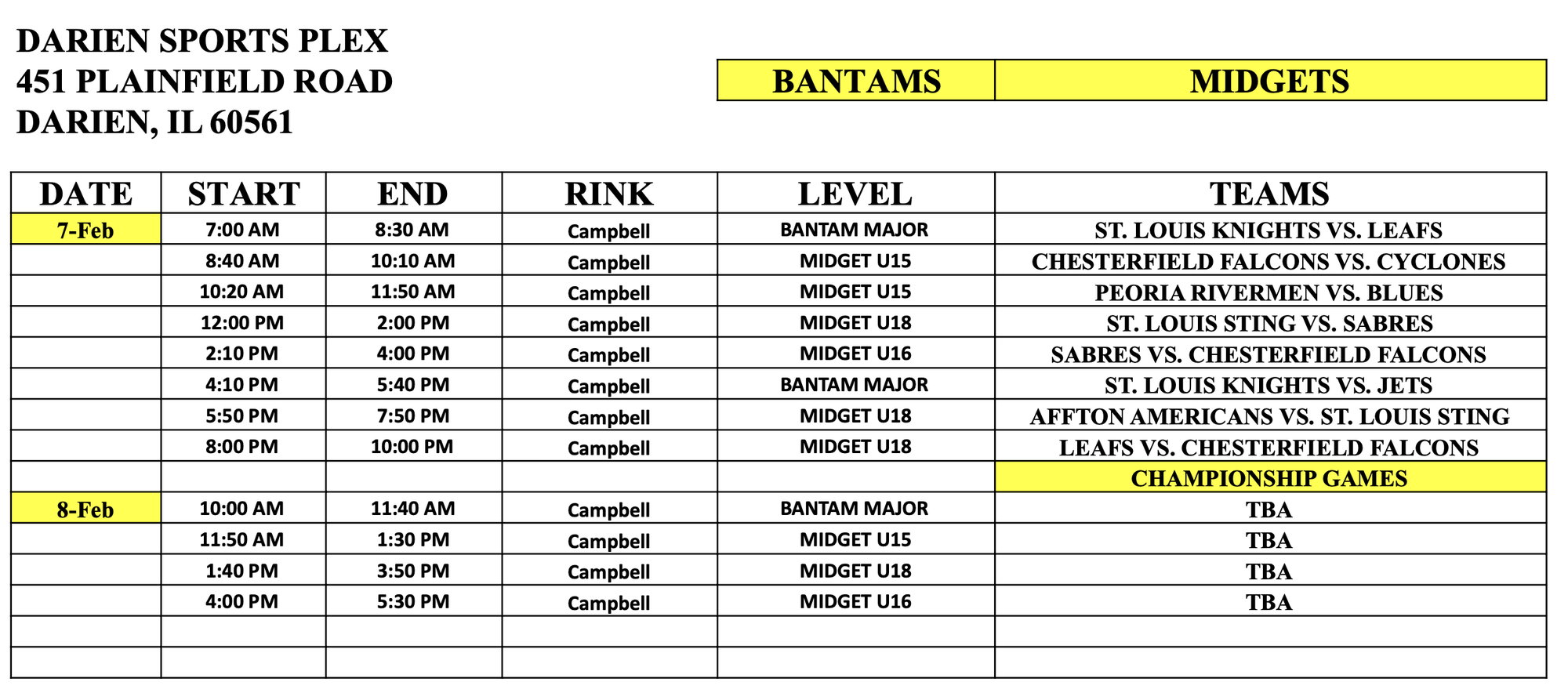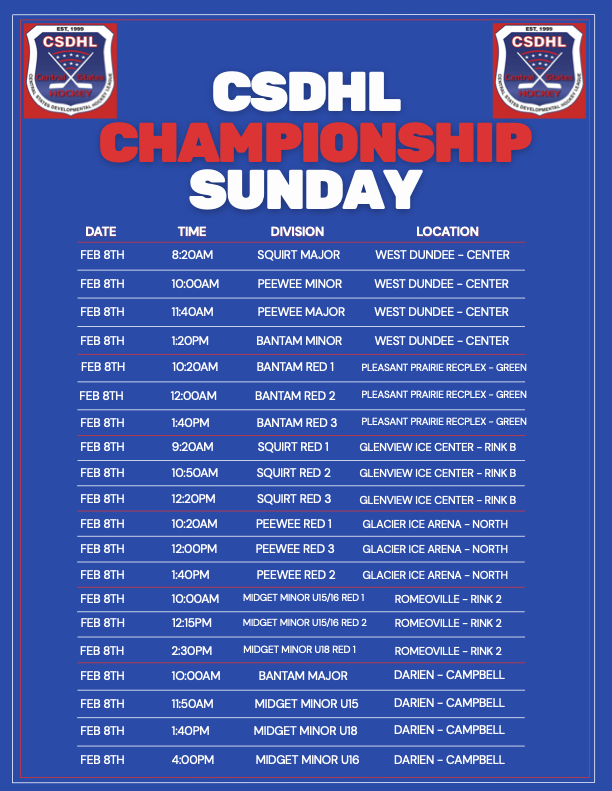 Athletic Trainers are REQUIRED for all Bantam Major , Bantam Minor & All Midget Level CSDHL Games.