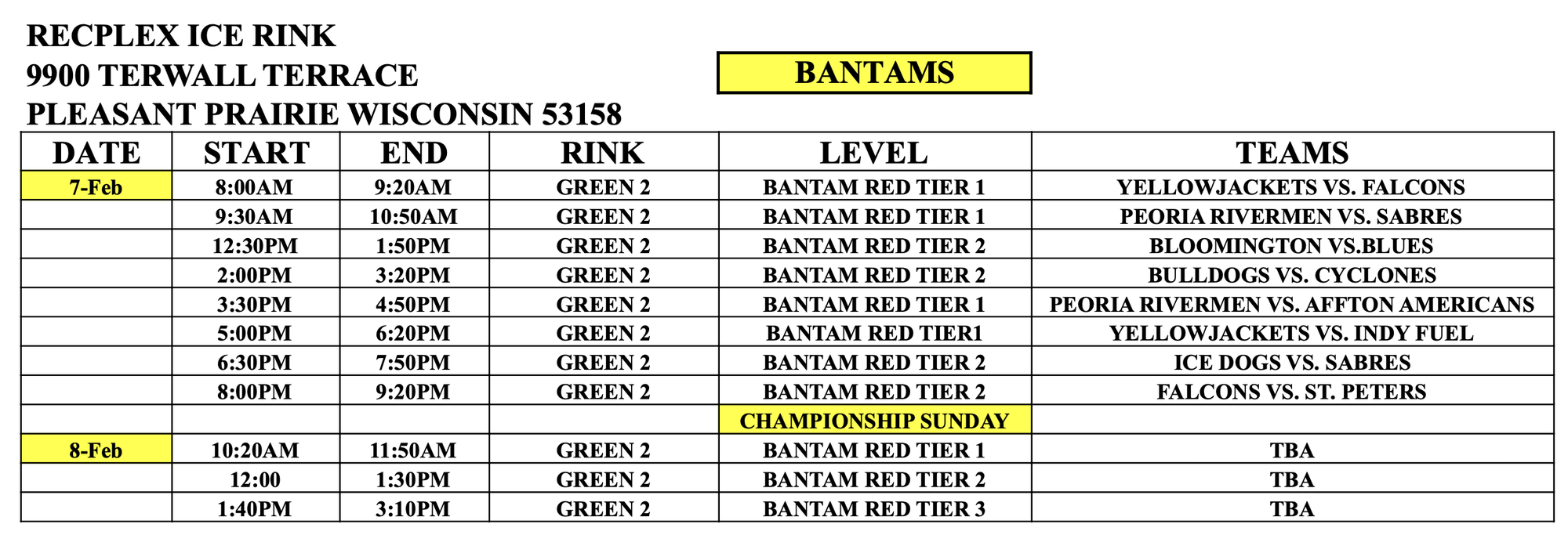 Please indicate in your email: Team name & Division playing in (i.e. Hawks Bantam Minor).