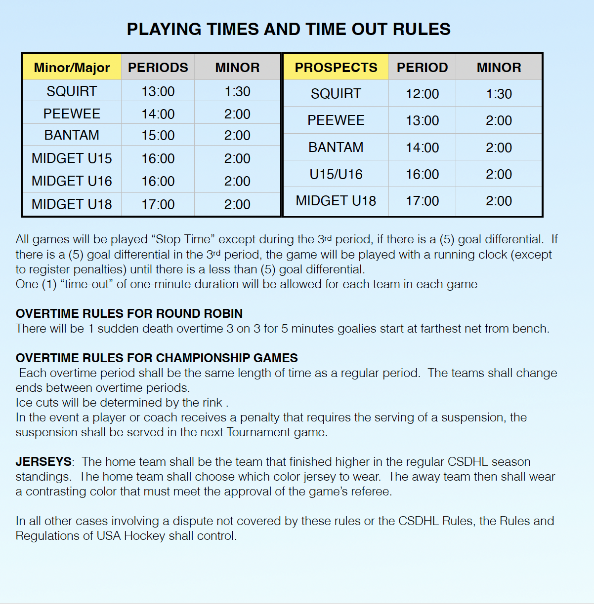 PLAYING TIMES & OVERTIME RULES